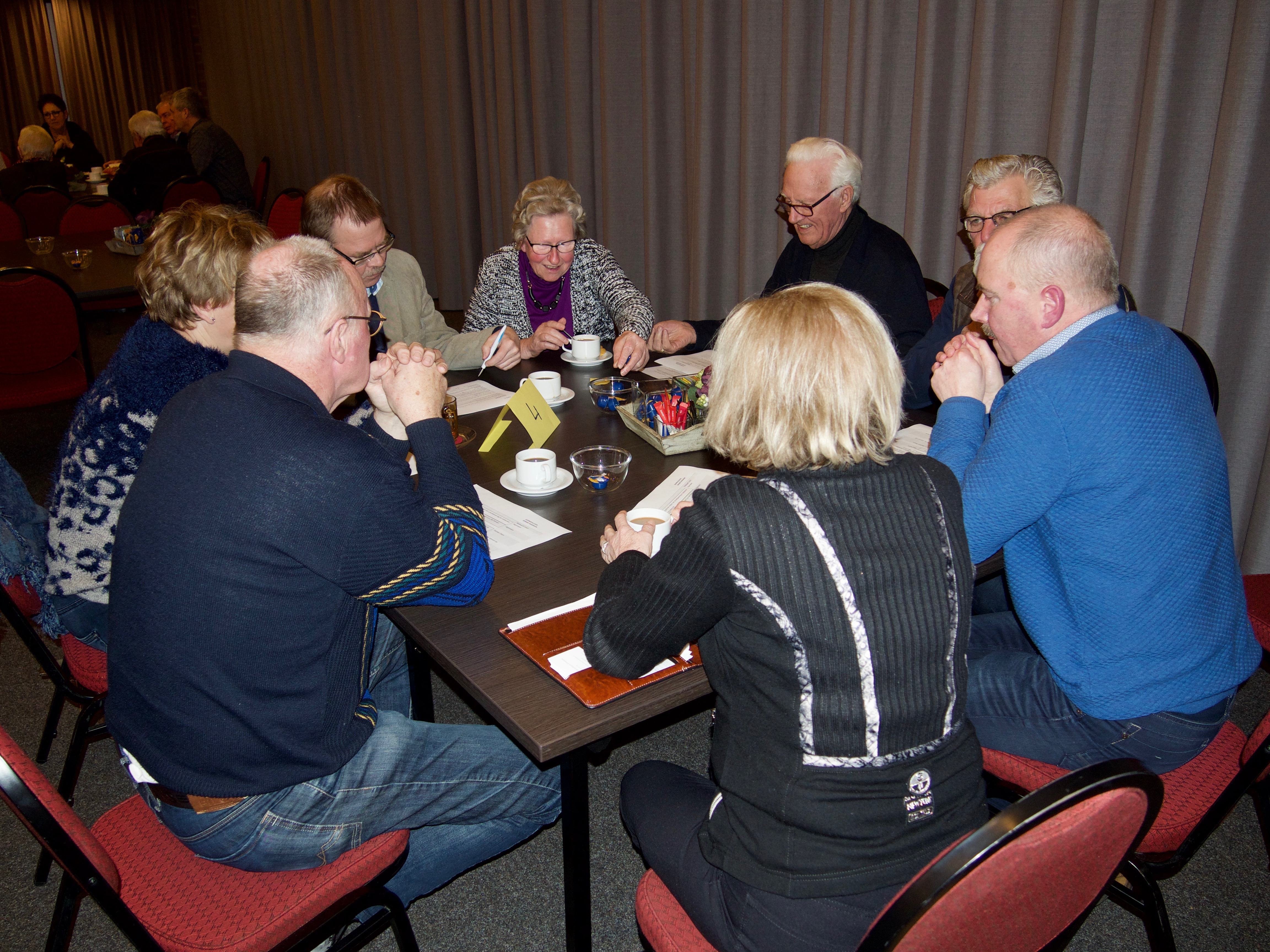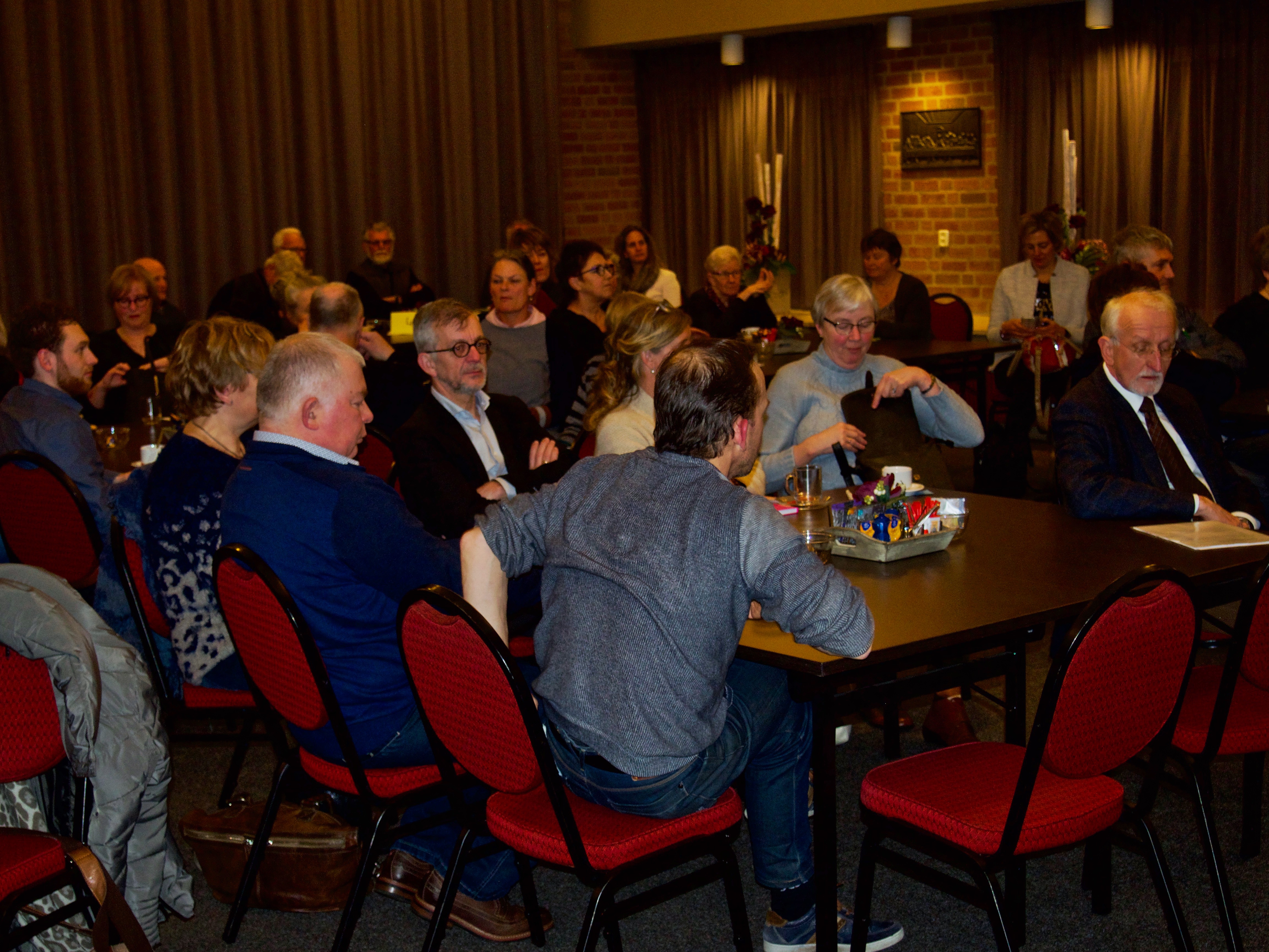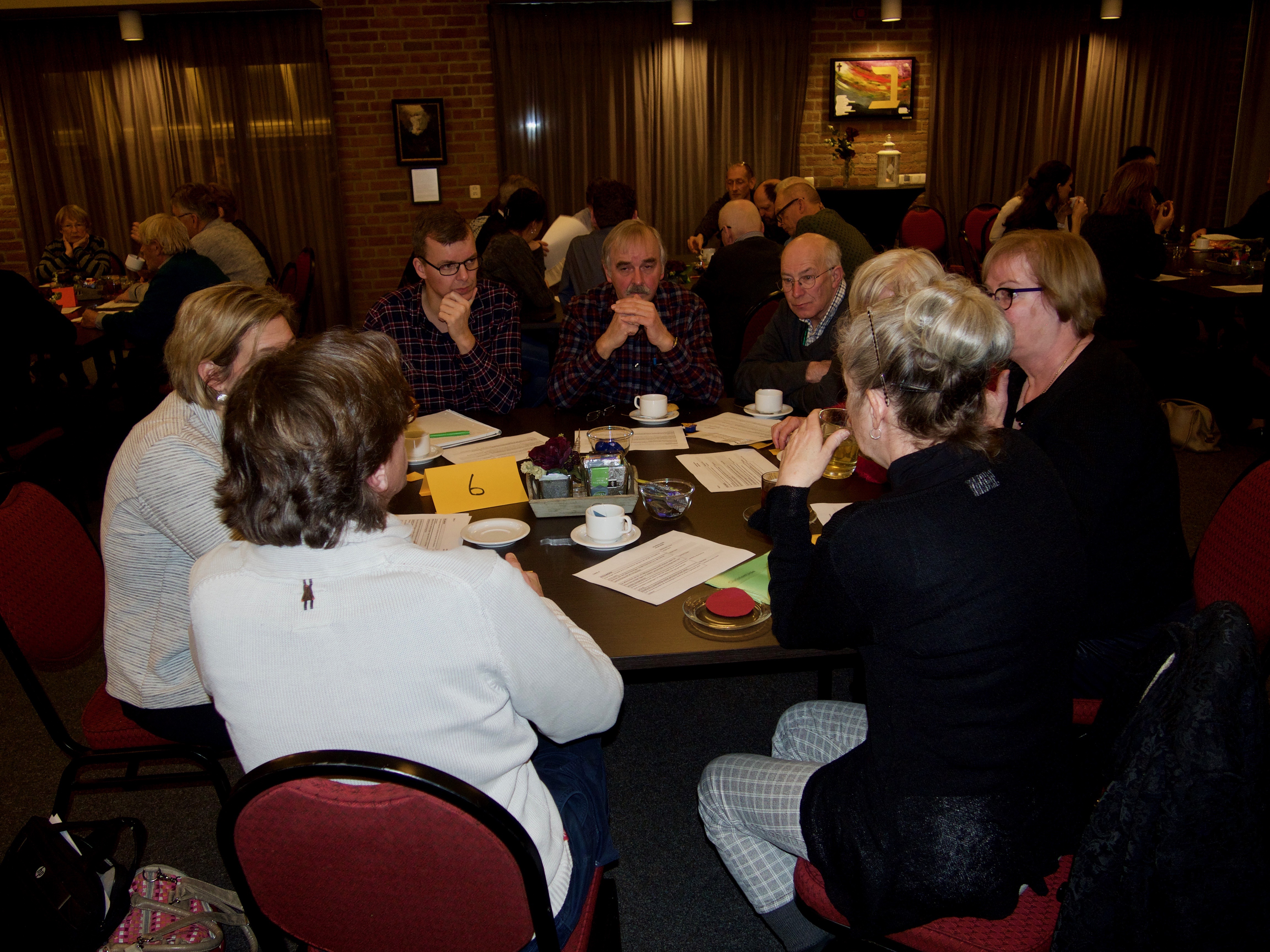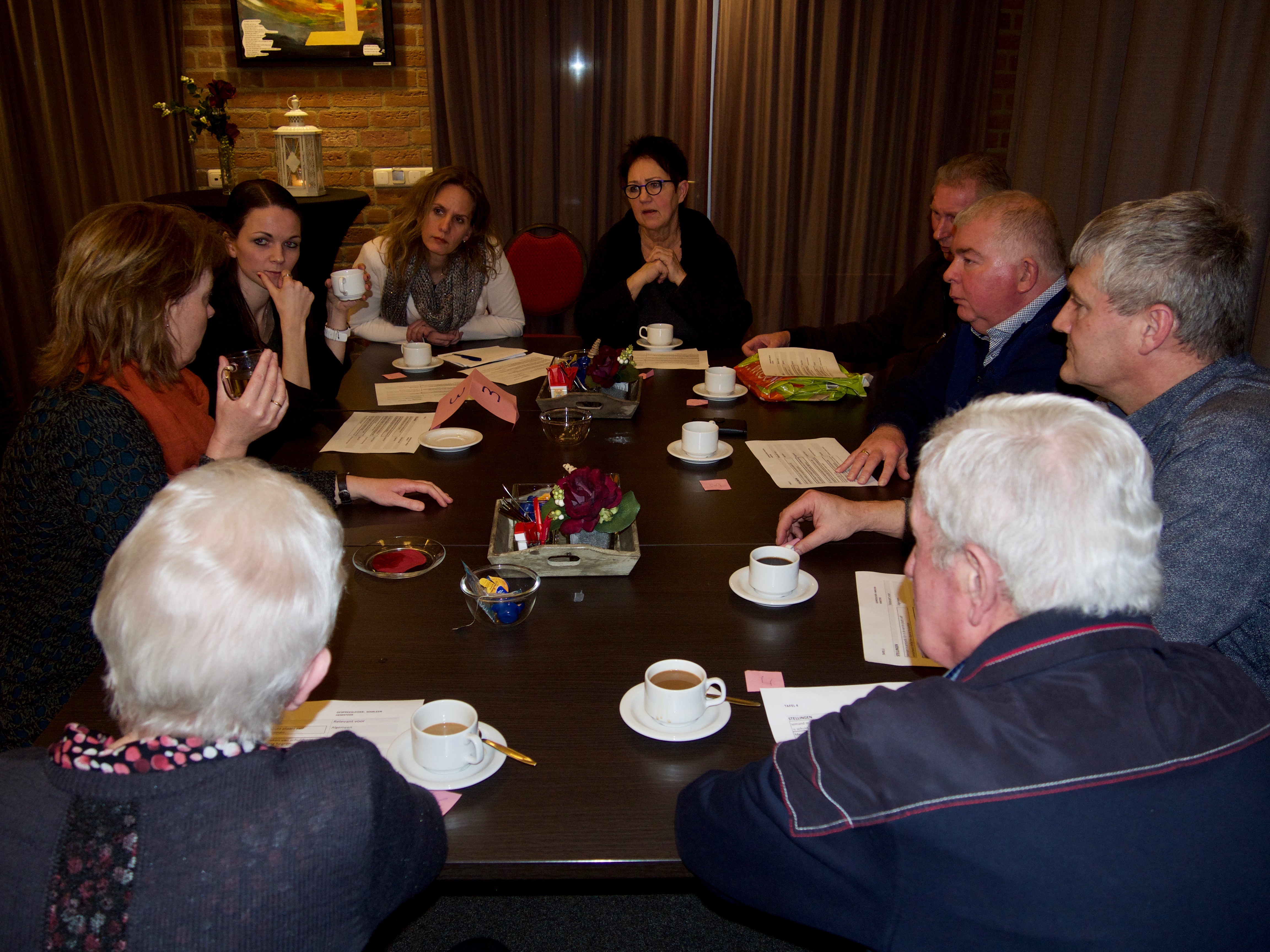 Een gemêleerd gezelschap was aanwezig en dat maakte de discussies zo boeiend en verrijkend tijdens het tweede deel van de avond dat zich afspeelde via tafelgesprekken aan de hand van stellingen.