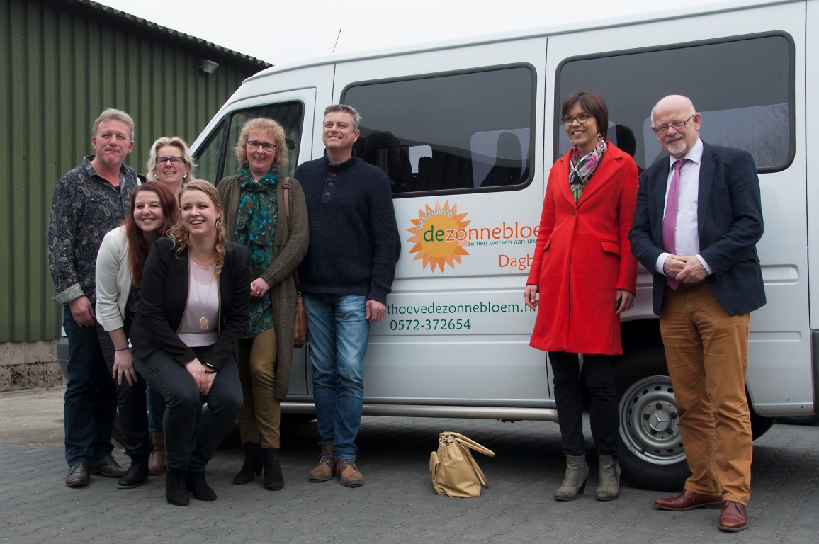 Om 12.30 werd er een bezoek gebracht aan Gasthoeve de Zonnebloem in Lemele. De familie Kuiper, Klaas, Herma en hun beide dochters, hadden een uitstekende lunch voorbereid en tijdens deze lunch is er uitgebreid gesproken over Gasthoeve de Zonnebloem, die dagactiviteiten verzorgt voor ouderen in een groene setting. Niets hoeft, alles mag dat is ons motto legde Klaas Kuiper uit. Vol enthousiasme werd verteld hoe een gemiddelde dag er uit ziet en hoe positief dit ook ervaren wordt door de bezoekers. Naast de mooie verhalen kwamen er ook knelpunten op tafel. De enorme bezuiniging in de zorg, o.a. ook op vervoer, de overheveling naar gemeenten die allemaal hun eigen systemen opbouwen waardoor er een heel ingewikkeld systeem ontstaat en waardoor o.a. ook uitbetalingen enorme vertraging oplopen. Carla Dik gaf aan die signalen goed opgepikt te hebben en die ook mee te nemen in haar gesprekken met o.a. minister Schippers van Volksgezondheid. Ook de raadsleden kunnen in hun gemeenten de wethouders vragen stellen op dit punt.